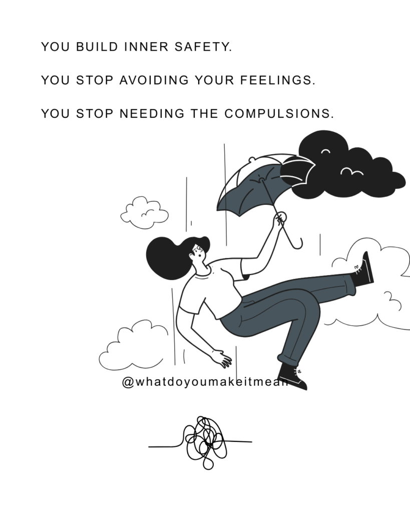 When we don’t have the knowledge of how or the capacity to emotionally regulate negative emotions in a healthy way, our body does what it can to keep us safe. OCD tries to keep us from feeling our core fears by trying to soothe through compulsions.